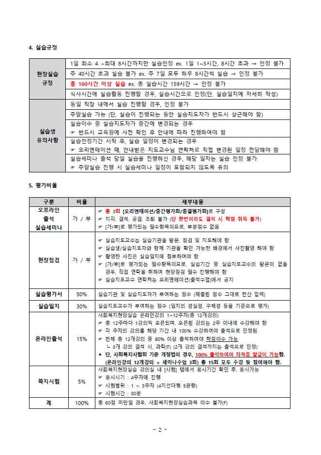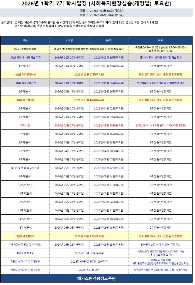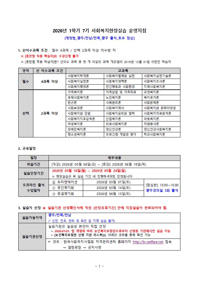 제목 2026년 1학기 7기 (3월 6일 개강반) 사복실습 (개정법_광주/전남/전북_광주출석) 운영지침