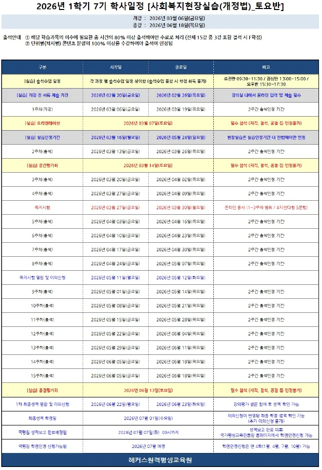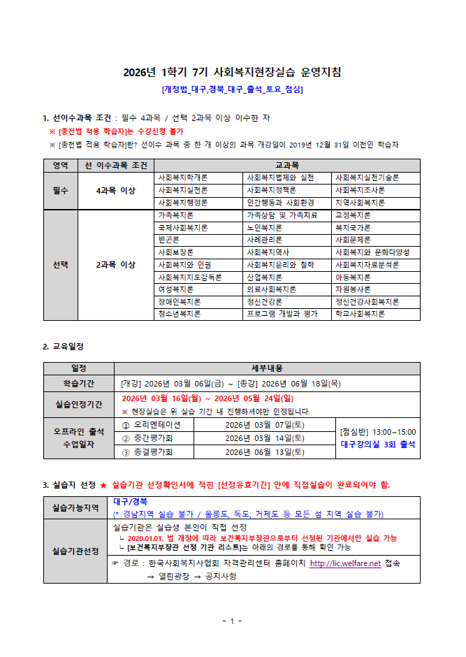 제목 2026년 1학기 7기 (3월 6일 개강반) 사복실습 (개정법_대구/경북_대구출석) 운영지침