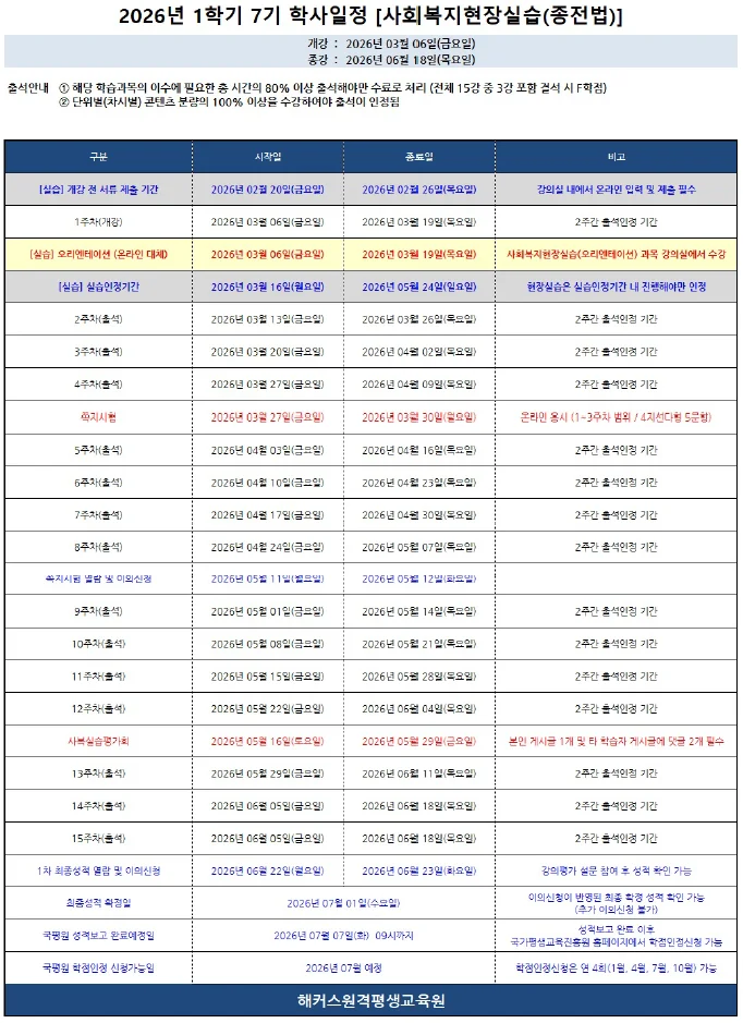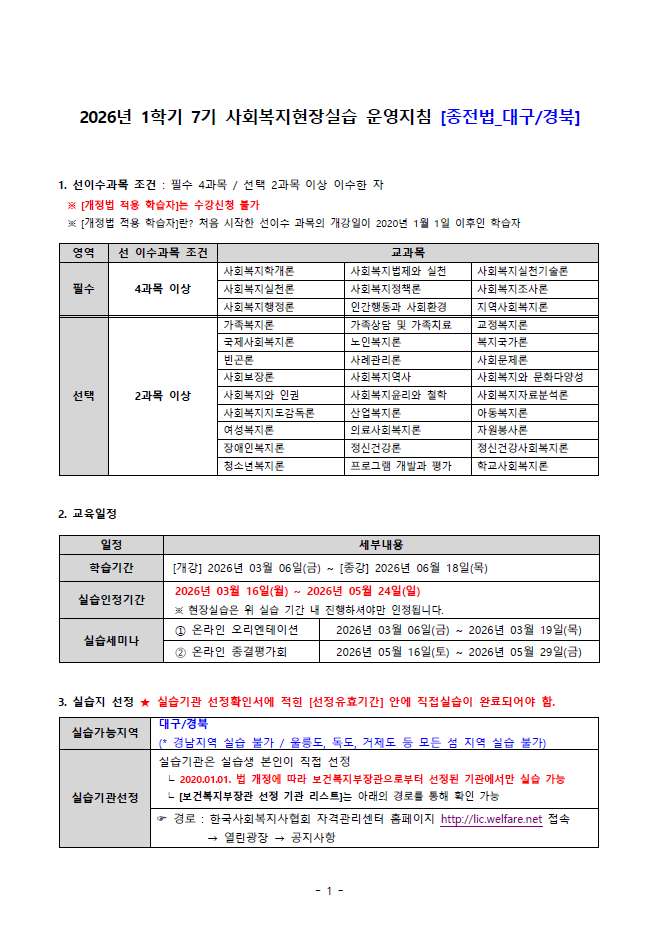 제목 2026년 1학기 7기 (3월 6일 개강반) 사복실습 (종전법_대구/경북) 운영지침